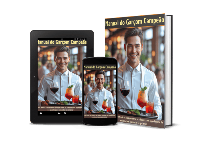 Com o E-book Manual do Garçom Campeão, você vai aprender técnicas simples, diretas e poderosas para encantar clientes, vender mais e se destacar como profissional — mesmo que esteja começando agora!